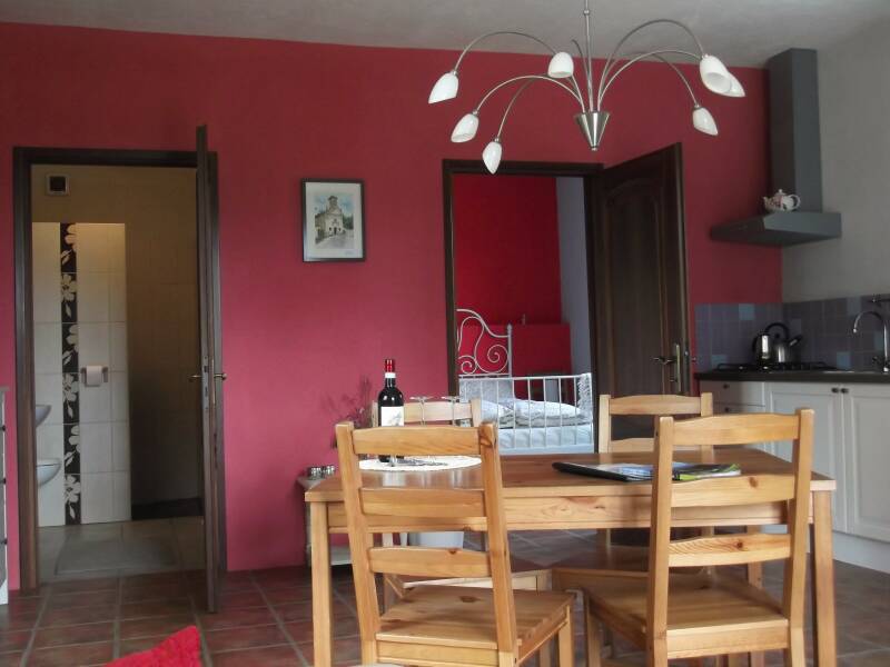 Une chambre avec: Lit double Cuisine avec: Salle à mangerCanapé-lit Salle de bains avec: Douche, lavabo et toilettes |